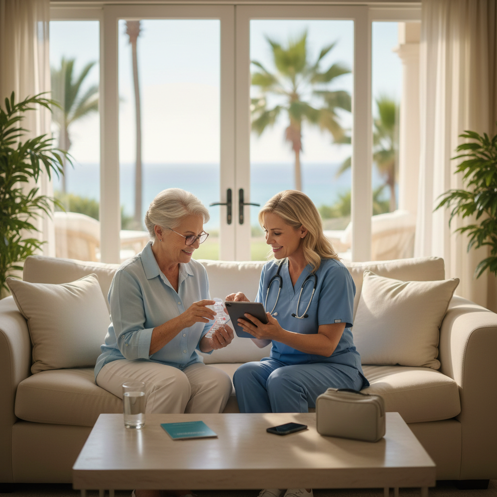 We provide the same standards of geriatric care you would expect in the United States or Canada brought directly to you in Cabo. Our service focuses on safety, clear communication, compassionate support, and seamless coordination with family members back home.